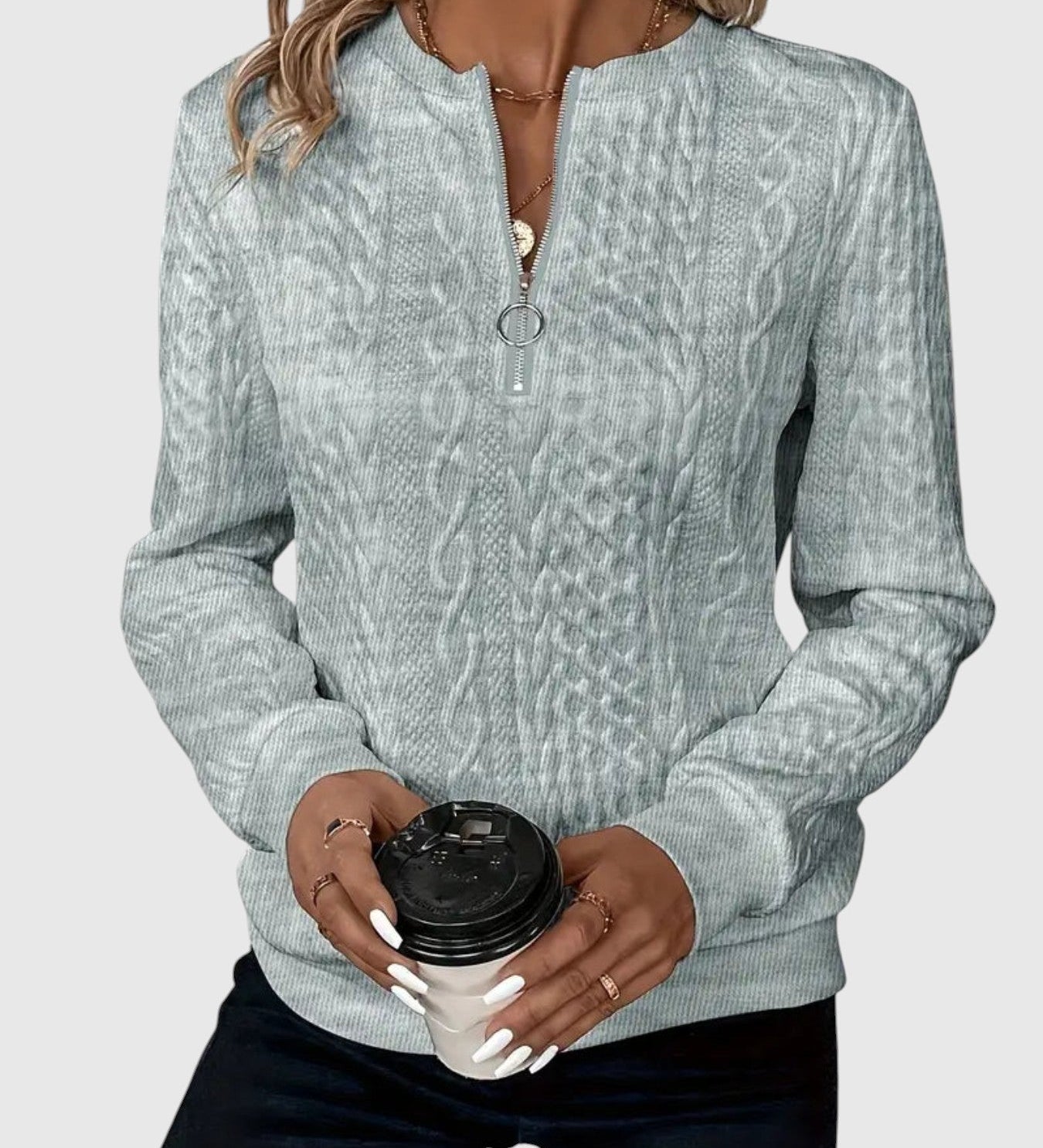 Amalie - Pletený svetr s copánkovým vzorem na zip