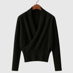 Elegance, která obejme. Elena je zavinovací svetr s výstřihem do „V“ a krásným splýváním, které opticky prodlužuje postavu a povýší každý outfit – od kanceláře po večeři.
