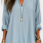 Lehká bavlněná košile s uvolněným střihem a bezstarostnou elegancí, ideální na pláž a každodenní výlety.