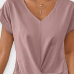 Pohodlný svetr s krátkým rukávem ve tvaru V
