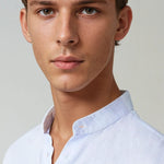 Objevte rafinovaný styl světle modré lněné košile s bandovým límcem od Grand Arbre. Tato stylová košile kombinuje prodyšné pohodlí lnu s moderním bandovým límcem, ideální pro muže, kteří hledají uvolněný a rafinovaný vzhled. Ideální pro neformální i poloformální příležitosti, nabízí tato košile všestrannou možnost pro různé outfity.