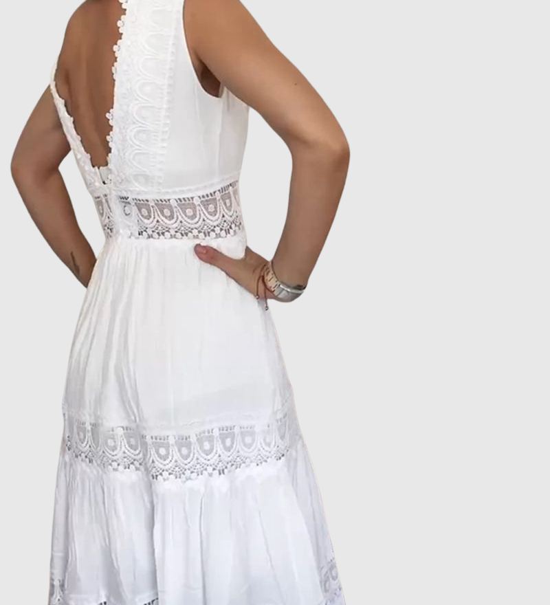 Ninfea - Bezrukávové midi šaty v boho stylu s krajkovými detaily