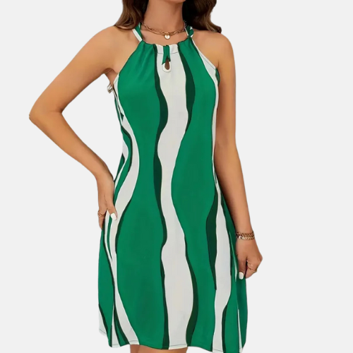 Olga - Šaty s krátkým zavazováním za krk, odhalenými zády a pruhovaným vzorem