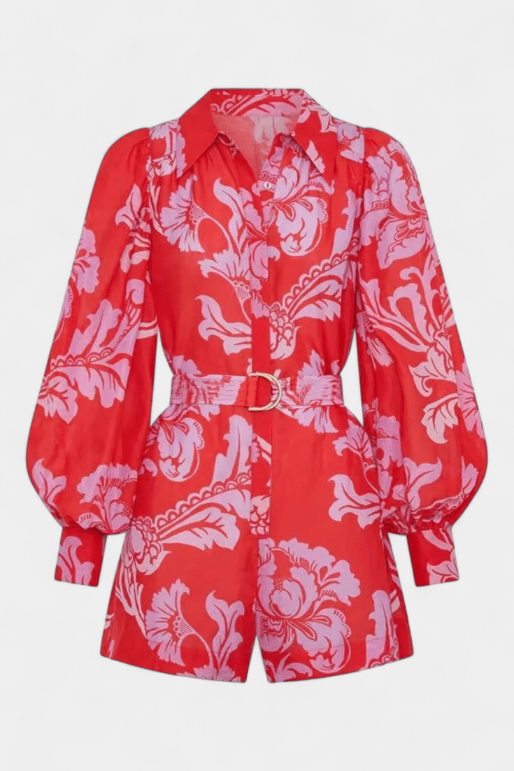 Oblek Suzanne, který spojuje osvěžující a okouzlující styl, je dokonalou volbou na letní dny. Živý květinový vzor a ladící pásek dělají z tohoto oděvu jedinečný kousek, zatímco krásně rámuje váš pas a zvýrazňuje lichotivou siluetu.