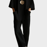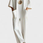 Tento krátkými rukávy overal nabízí pohodlí s minimalistickým designem, který je vhodný jak pro denní, tak večerní nošení. Snadno se kombinuje s různou obuví a doplňky, poskytující bezstarostný moderní vzhled.