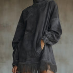 Elara | Semišové rolákové šaty s třásněmi