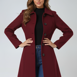 Elevate your outerwear collection with this stunning women's button-front fit and flare jacket. Combining a tailored fit with a charming flared silhouette, this jacket not only offers style but also a comfortable wear for all occasions. The classic collar adds a touch of sophistication, making it a versatile piece for both casual outings and semi-formal events.