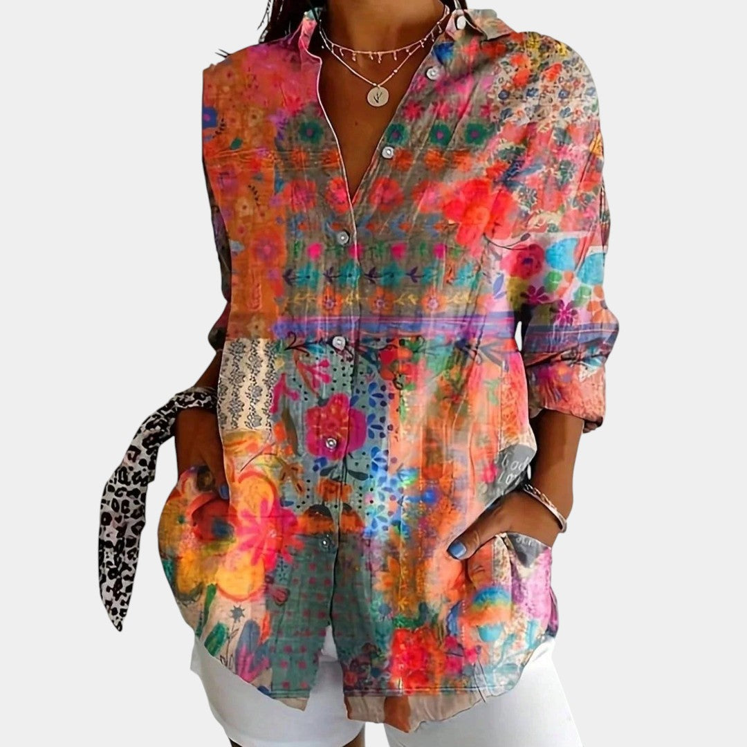 Halenka Kristýna je ideální volbou pro ty, kdo chtějí spojit komfort a styl v jednom. Její volný střih a vzdušný materiál zajišťující příjemné nošení i během nejteplejších dnů, zatímco barevný a hravý potisk dodává outfit živost a originalitu. Perfektní k šortkám, džínům i sukni.
