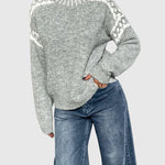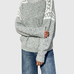 Svetr Liv je perfektní na chladné dny. Měkký pletený materiál a vysoký límec vás příjemně zahřejí, zatímco skandinávský vzor mu dodává nadčasový a zimní vzhled.