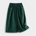 Přirozená textura a nenáročný styl v sukni, která kombinuje retro kouzlo s každodenní praktičností. Vysoký pas přiléhá k ženské siluetě, zatímco přední kapsy nabízejí pohodlí a funkčnost.