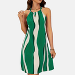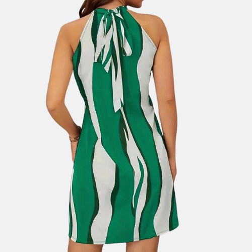Olga - Šaty s krátkým zavazováním za krk, odhalenými zády a pruhovaným vzorem