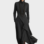 • Sochařský asymetrický střih – Vrstvené, volně splývavé panely vytvářejí výraznou a zároveň lichotivou siluetu, která se odlišuje od běžných střihů.